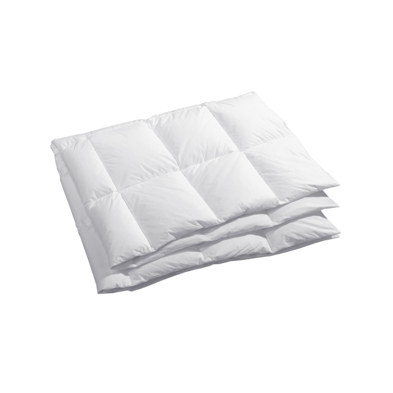 De juiste warmte voor het hele jaar door. Behaaglijk, teder en zacht. De stof op stof gestikte vierkanten voorkomen dat de inhoud verschuift. Tijk aan een zijde boven bedekt met Outlast®-stof voor een perfecte temperatuurcompensatie.